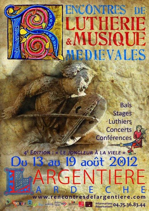 La 4ème édition des « Rencontres de lutherie et musique médiévales » se tiendra du 13 au 19 août 2012 dans la cité historique de Largentière en Ardèche Méridionale, autour de la thématique du « jongleur à la vièle ».